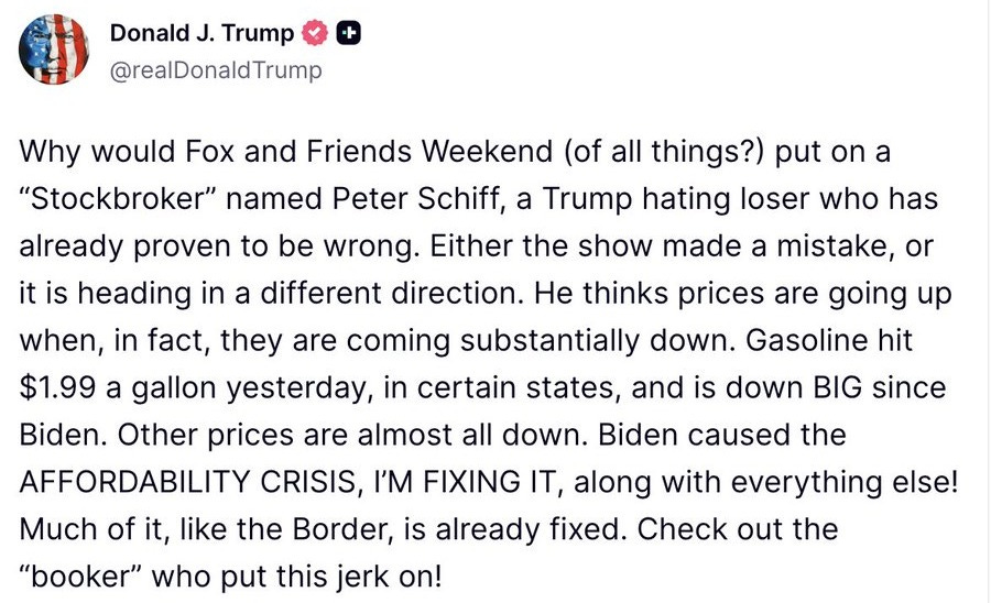 Peter Schiff bashes Trump every day on X, and his followers report anyone who disagrees with him, but he defended Epstein. Earlier last year, Peter Schiff (a vocal Trump hater) claimed that President Trump was responsible for Obama-Biden hyper-inflation and all the nation’s problems - not Biden.