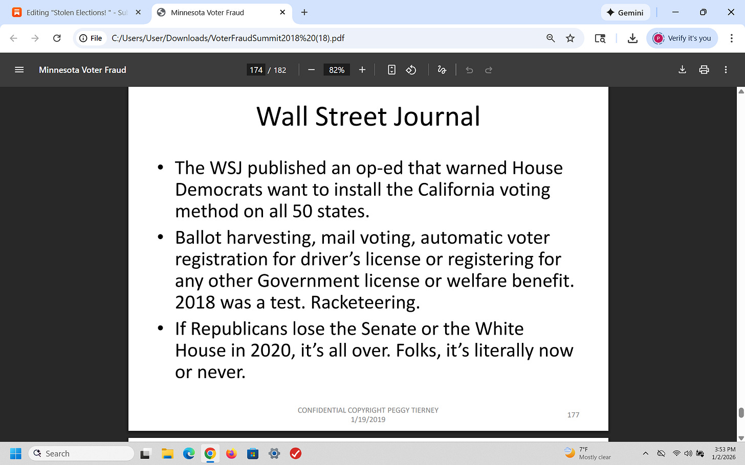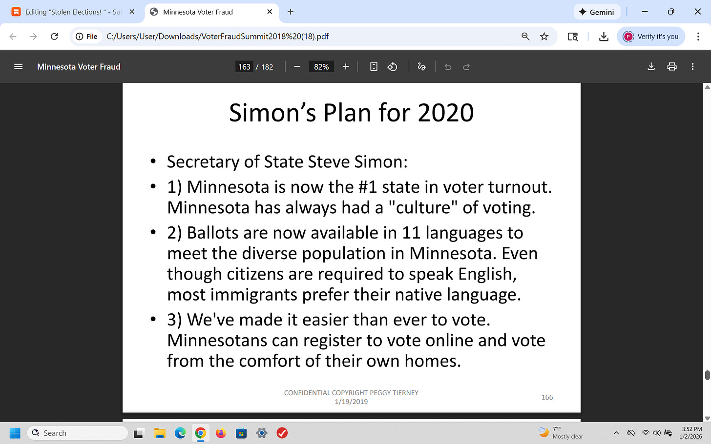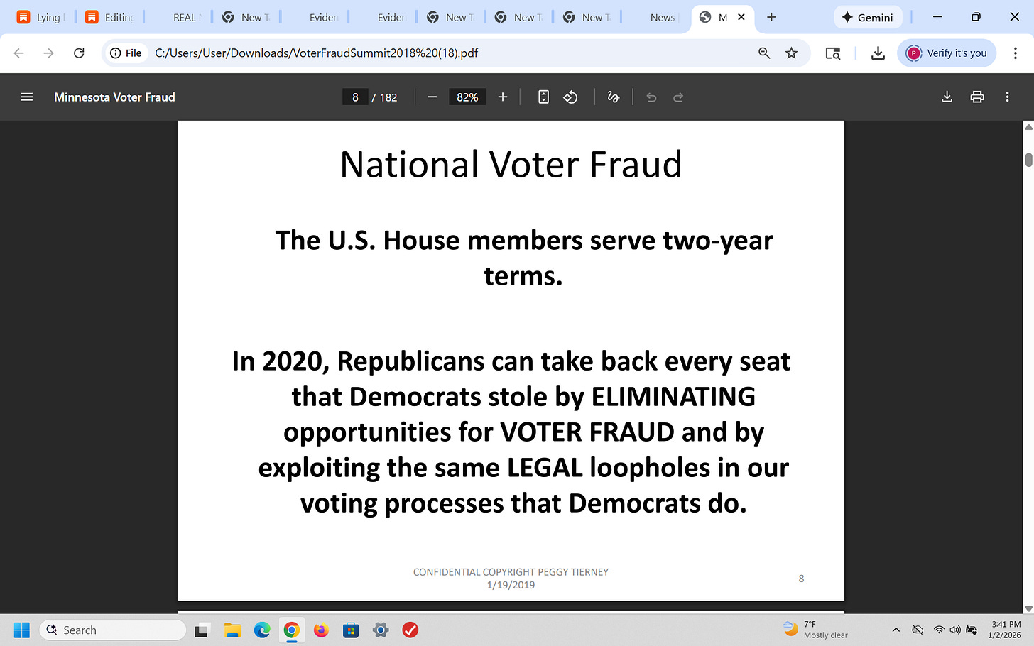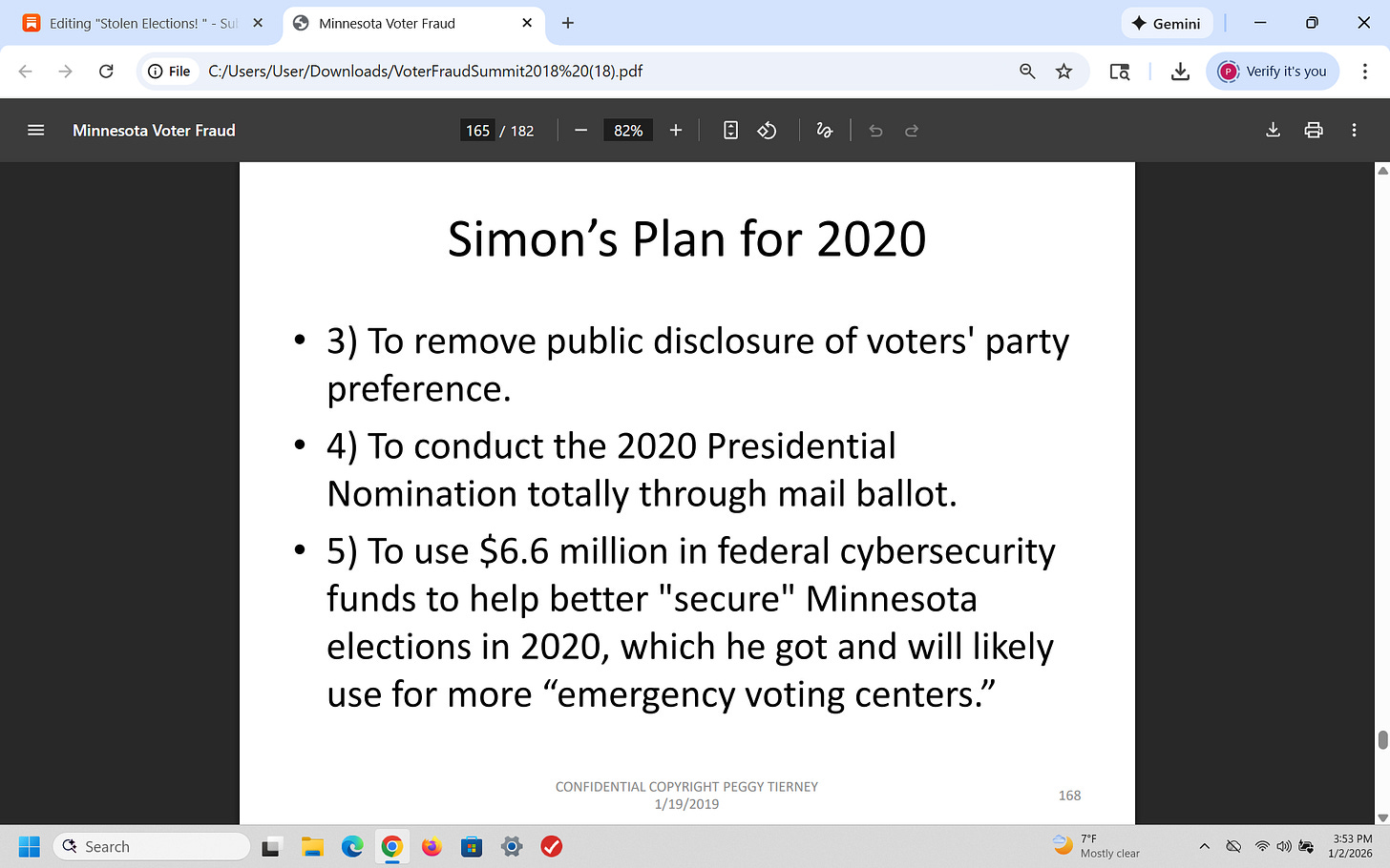 That was a brief recap of what I presented on January 19, 2019 (7 years ago) about election fraud (using Minnesota as an example) - and I have been proven 100% right. Why is this important? Because CONGRESS has known about this for years!