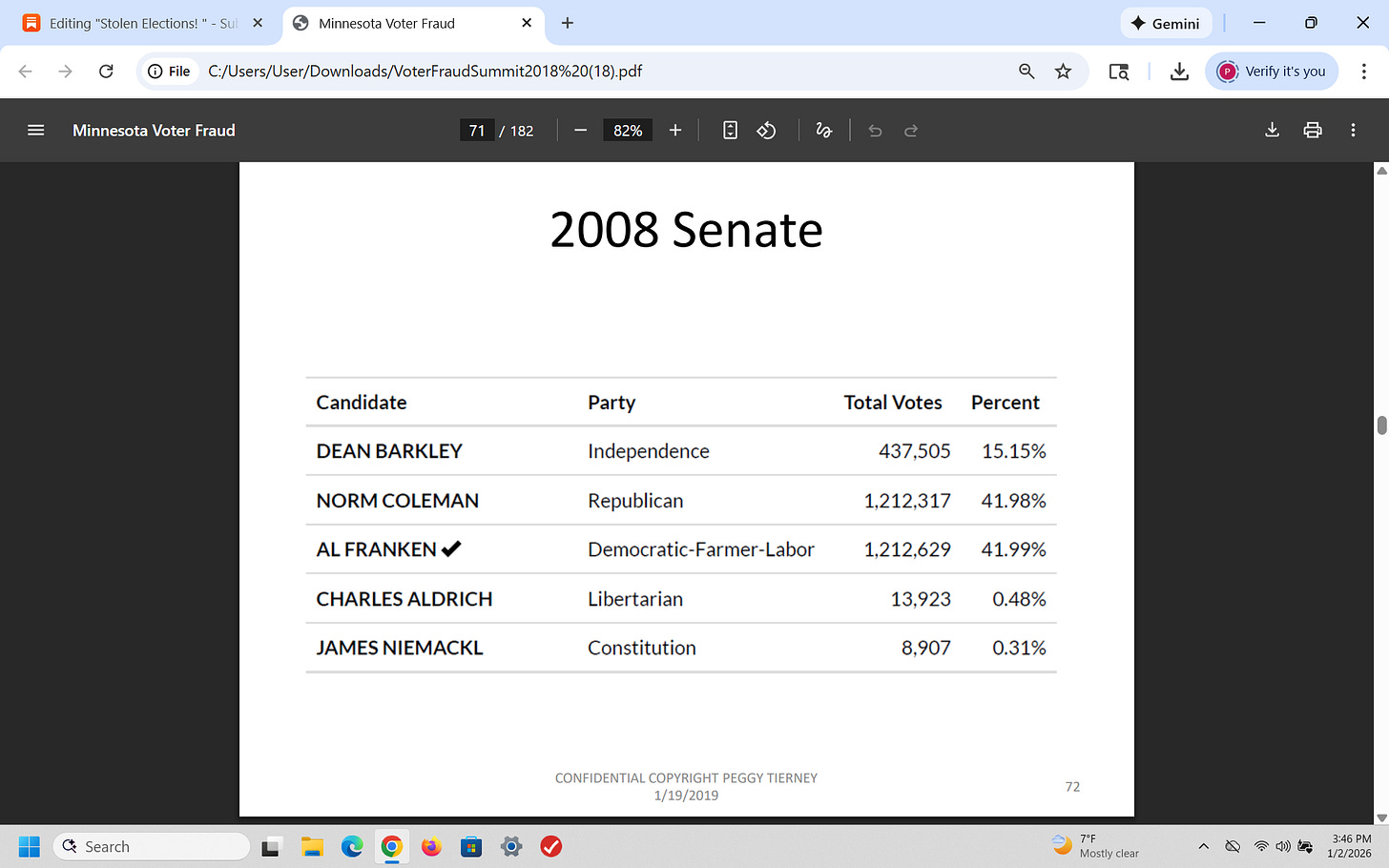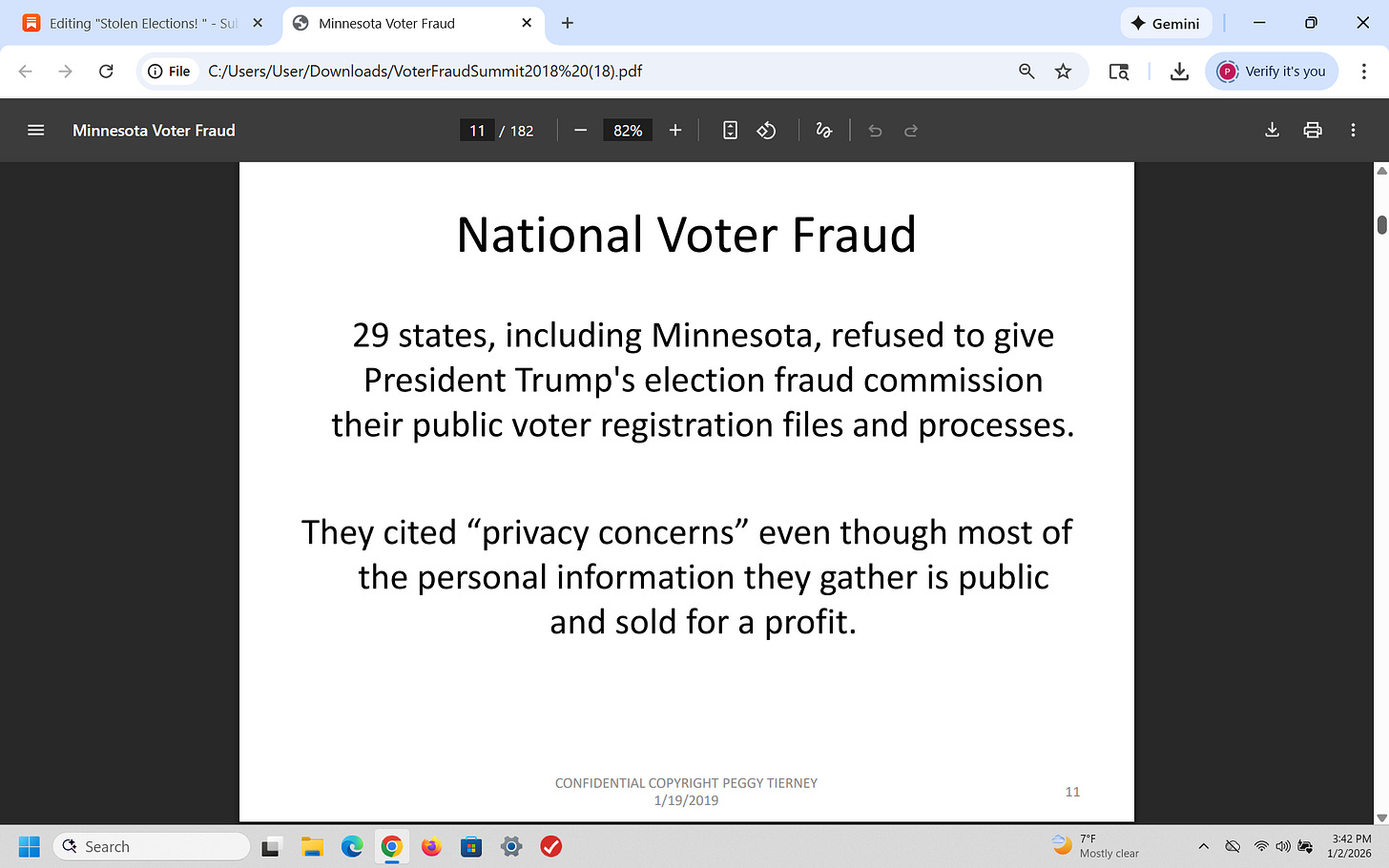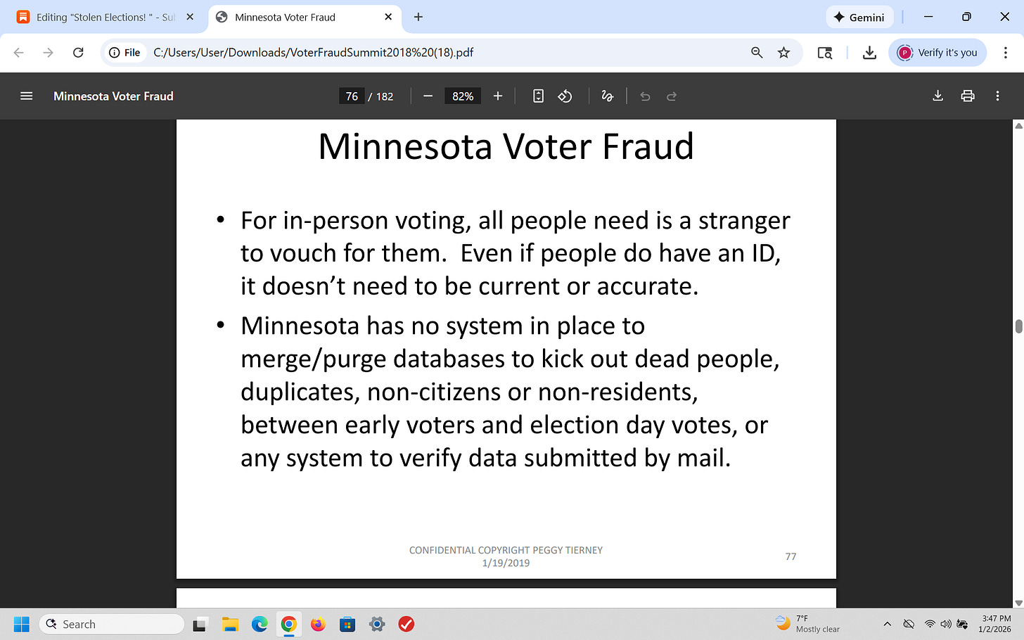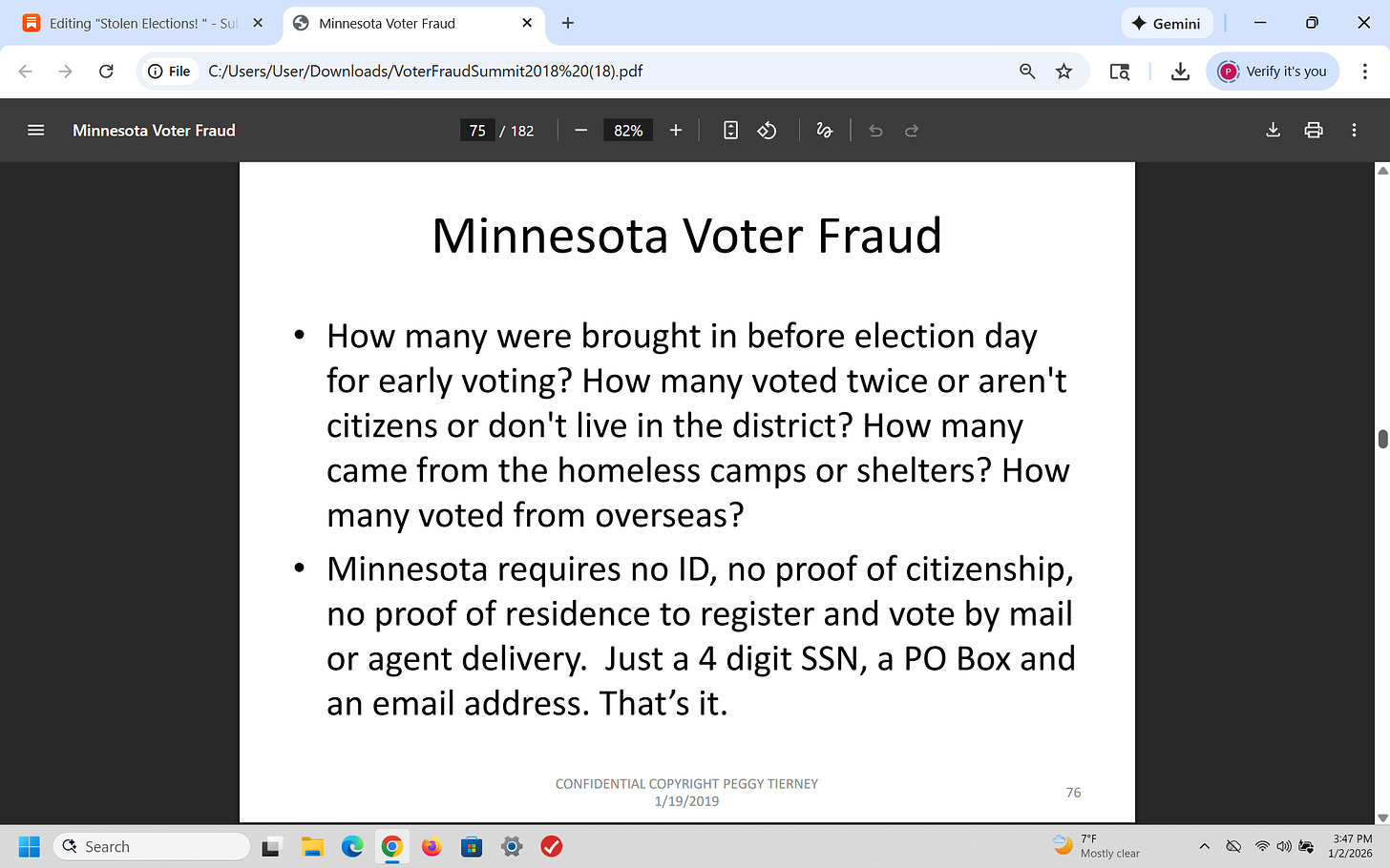 That was a brief recap of what I presented on January 19, 2019 (7 years ago) about election fraud (using Minnesota as an example) - and I have been proven 100% right. Why is this important? Because CONGRESS has known about this for years!