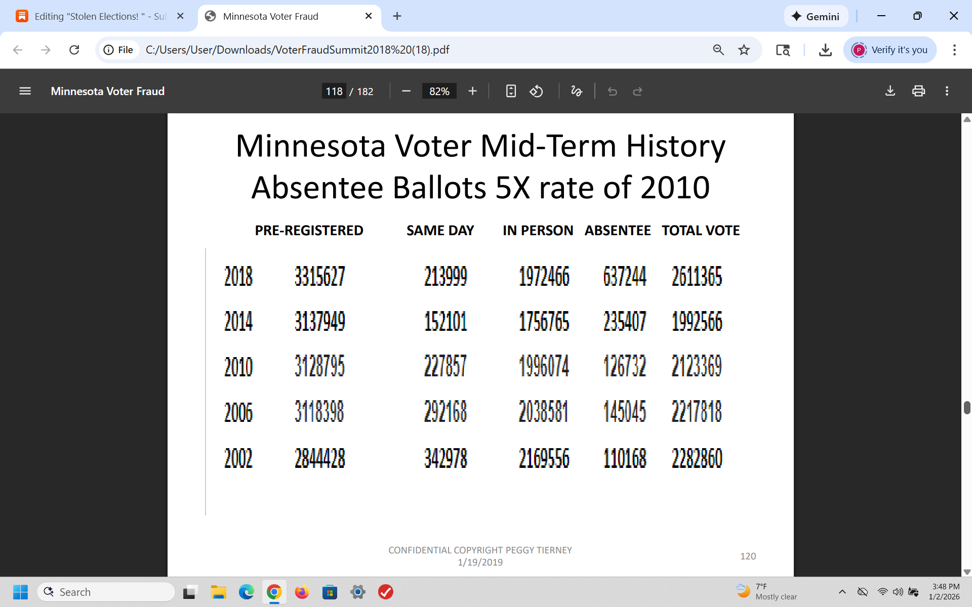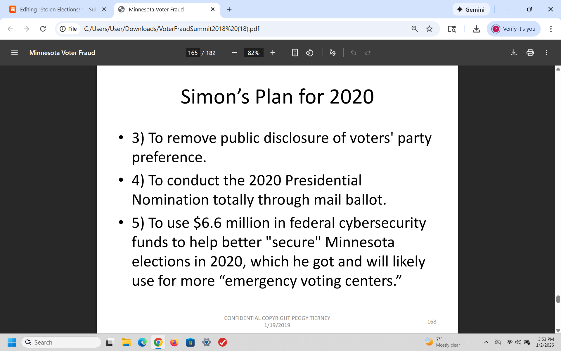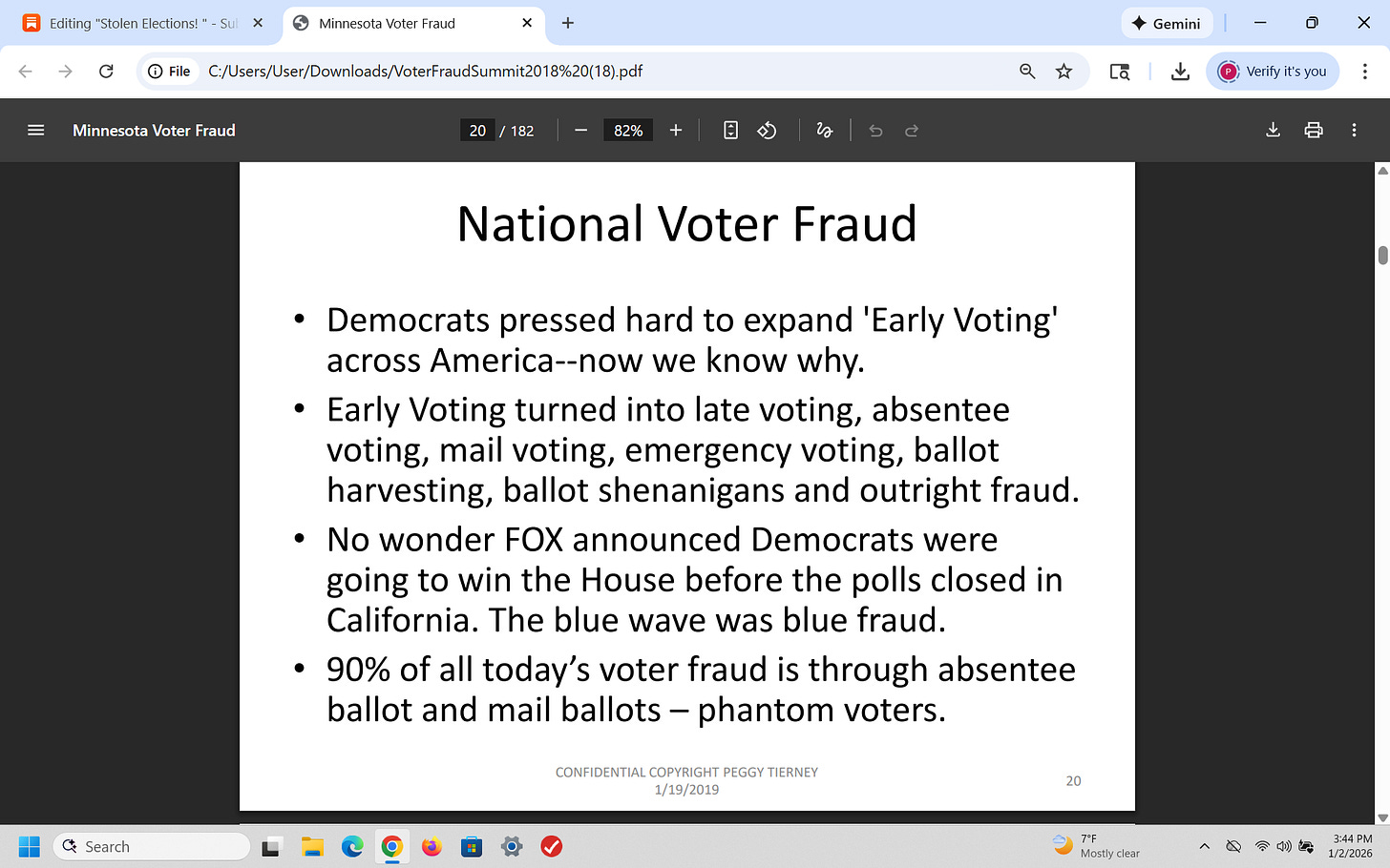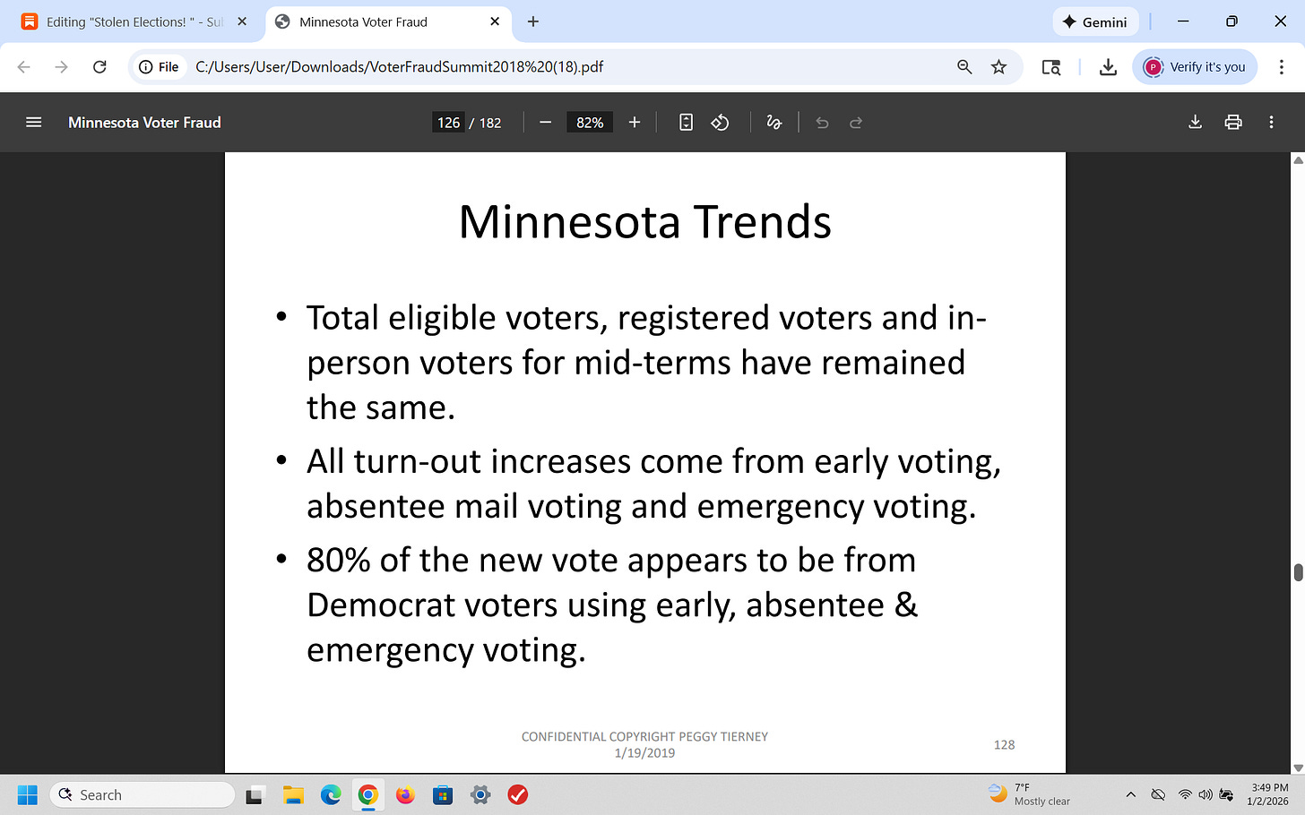 In 2018, after I analyzed the fraudulent 2018 mid-term elections in Minnesota, I warned the GOP that Democrats would use voter fraud to steal the 2020 election and I was right. I wrote a 200 page slide presentation and presented it to over 350 Republicans - then I was told by the RNC that it was sent to the White House.