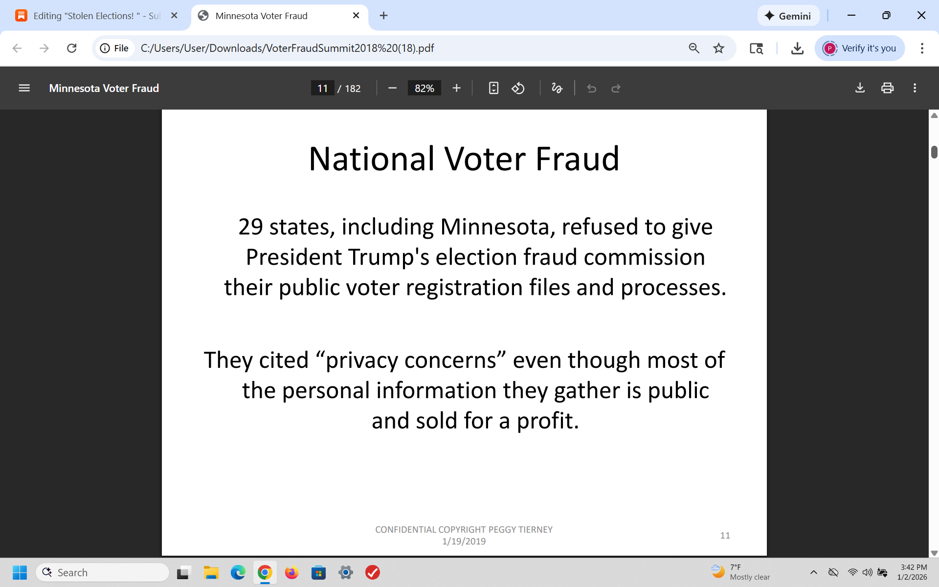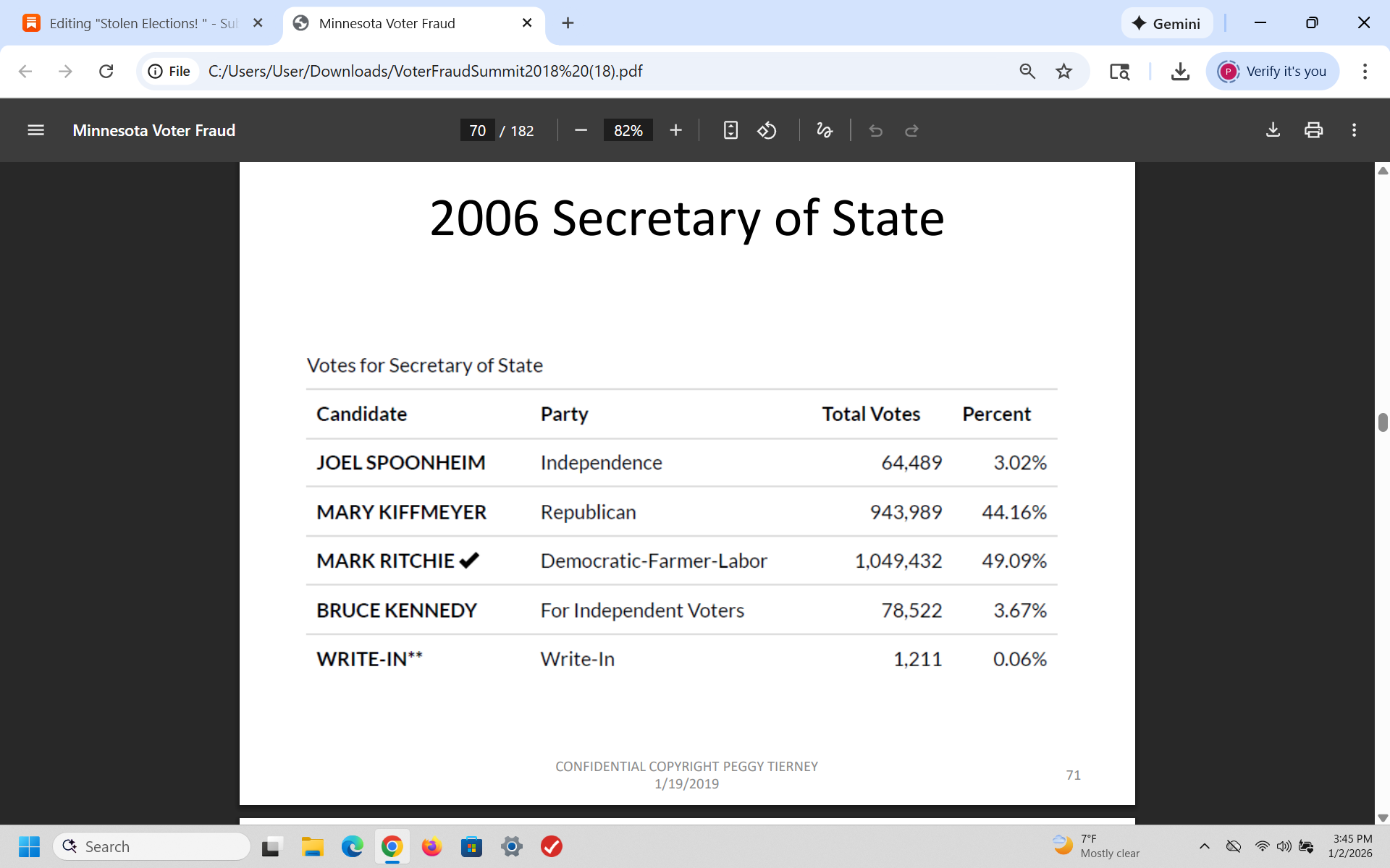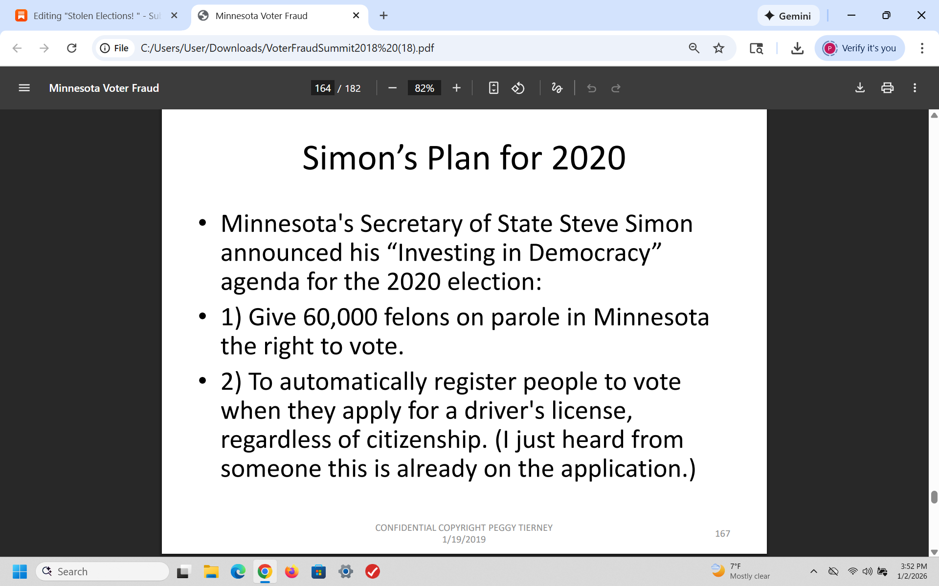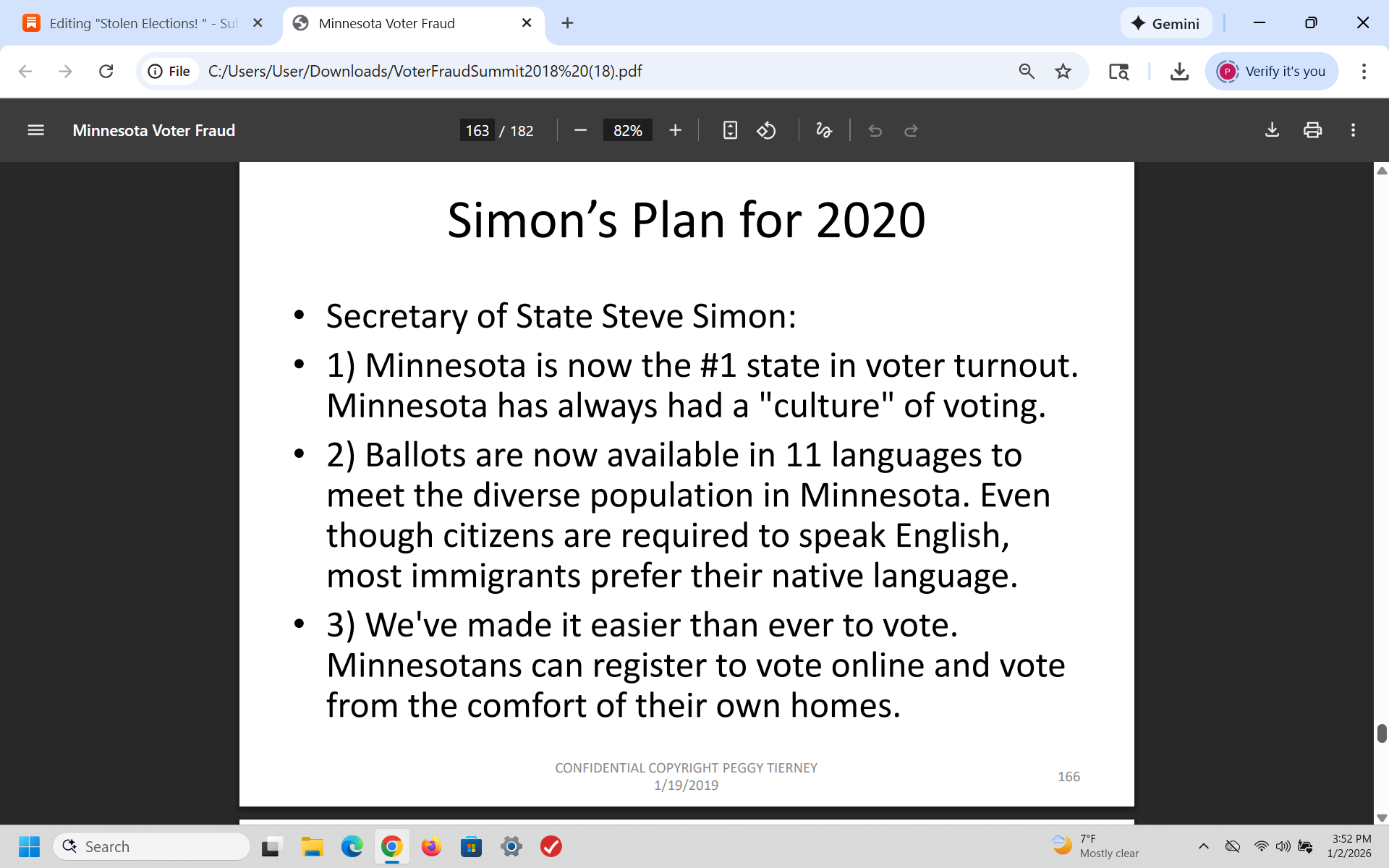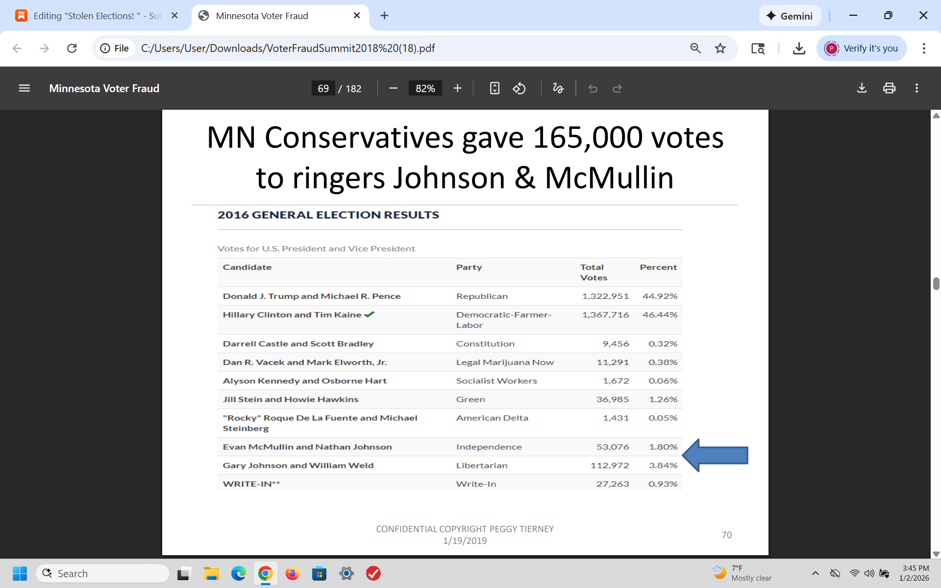 In 2018, after I analyzed the fraudulent 2018 mid-term elections in Minnesota, I warned the GOP that Democrats would use voter fraud to steal the 2020 election and I was right. I wrote a 200 page slide presentation and presented it to over 350 Republicans - then I was told by the RNC that it was sent to the White House.