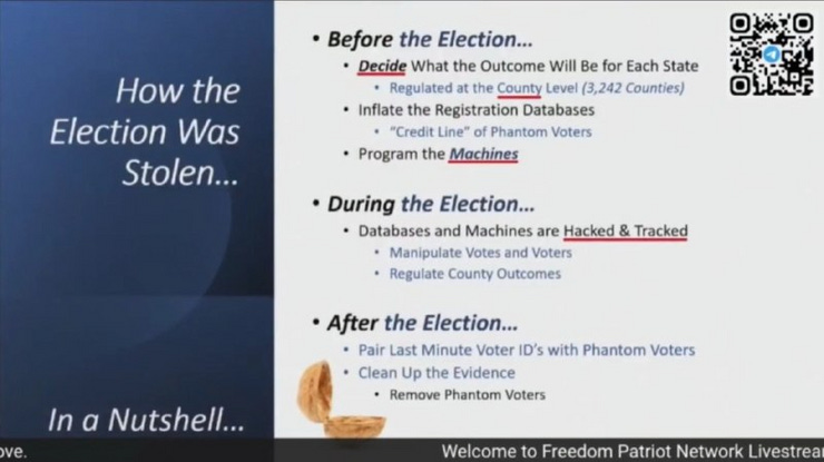 They also introduced a whistleblower out of Colorado, Tina Peters, who had concrete proof that the voting machines were wiped clean & passwords leaked to bad actors.
