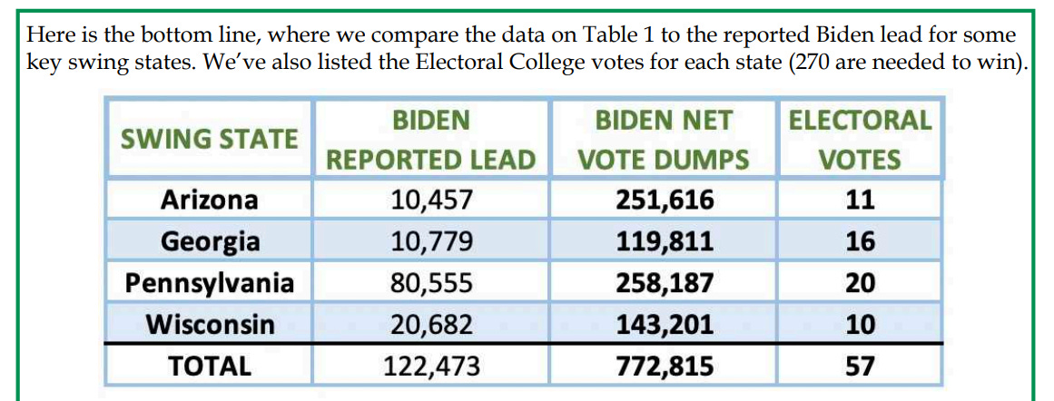 As you can see, this isn't a handful of illegal votes. In these 6 states alone, they found over 3.1 MILLION possible ILLEGAL votes ABOVE Biden’s alleged margin of victory of 312,992.