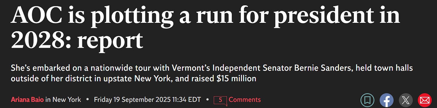 Also, right after Charlie’s assassination, the Communist AOC announced she was probably going to run for President - as I predicted months ago in my series called Madame President. Isn’t it convenient that she announced that right after her strongest opponent (Charlie Kirk) is now dead?